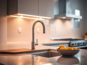 Przy bardzo ciemnych blatach dobrze jest rozjaśnić ściany i zadbać o silne oświetlenie robocze. Podszafkowe LED-y, jasne płytki między szafkami i odbijające światło elementy (np. stal szczotkowana) równoważą masywność czerni czy grafitu.
